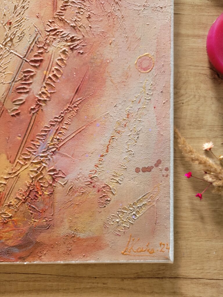 Faktura odgrywa w mojej twórczości kluczową rolę – pozwala na stworzenie głębi, trójwymiarowości i wyjątkowego wrażenia dotykowego. Każdy obraz to dialog między kolorem a przestrzenią, zaproszenie do odkrycia subtelnych emocji i historii zapisanych w warstwach farby.