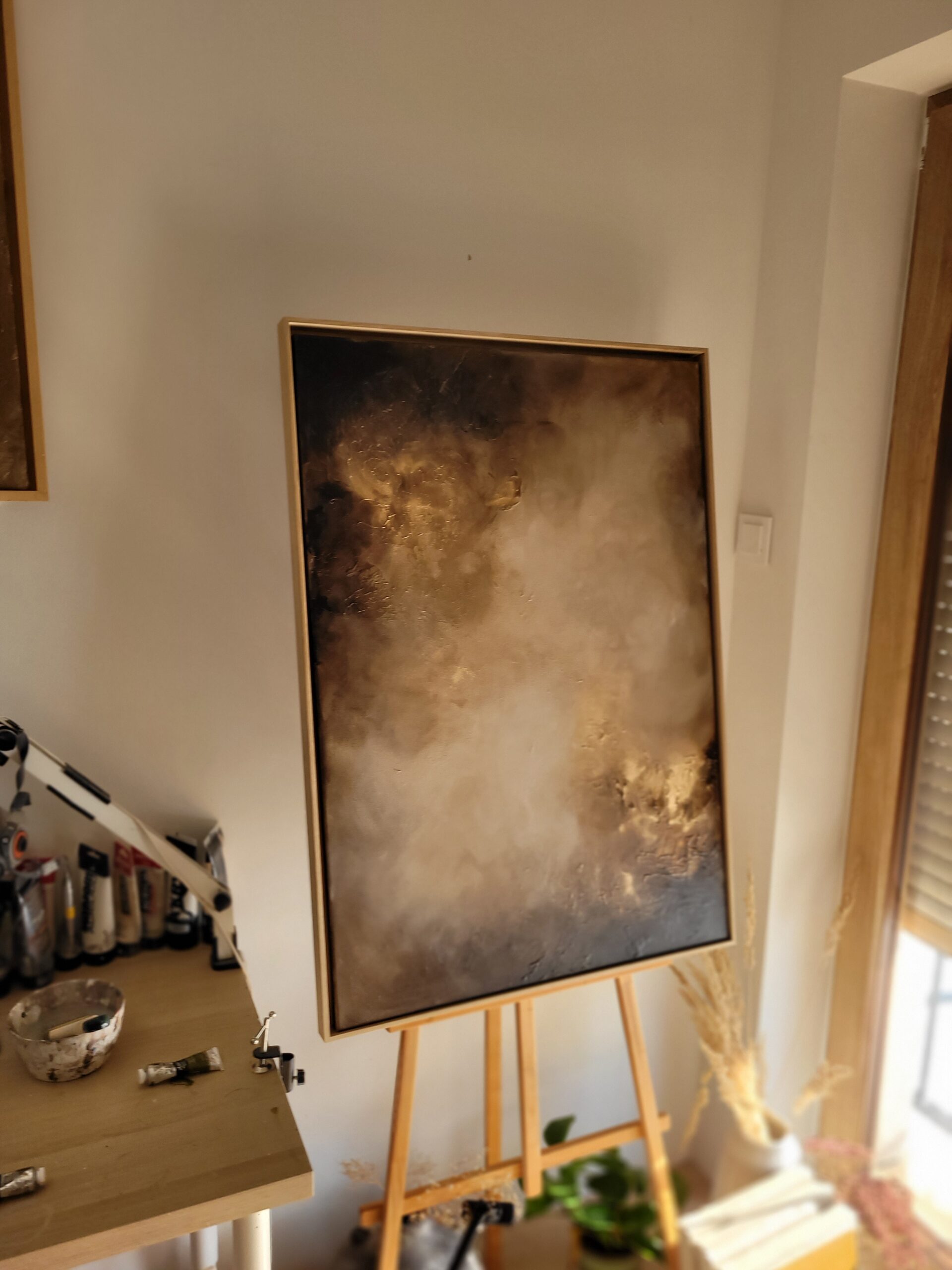 „Światło i mrok”, 100 x 70 cm, akryl i pasty strukturalne, 2025 Obraz „Światło i mrok ” przedstawia zestawienie jasnych i ciemnych partii kolorystycznych w formie abstrakcyjnej kompozycji. Odbiór pracy opiera się głównie na analizie koloru, światła, faktury oraz relacji między poszczególnymi elementami. Obraz można traktować jako wizualne zestawienie przeciwstawnych wartości tonalnych oraz eksperyment z…