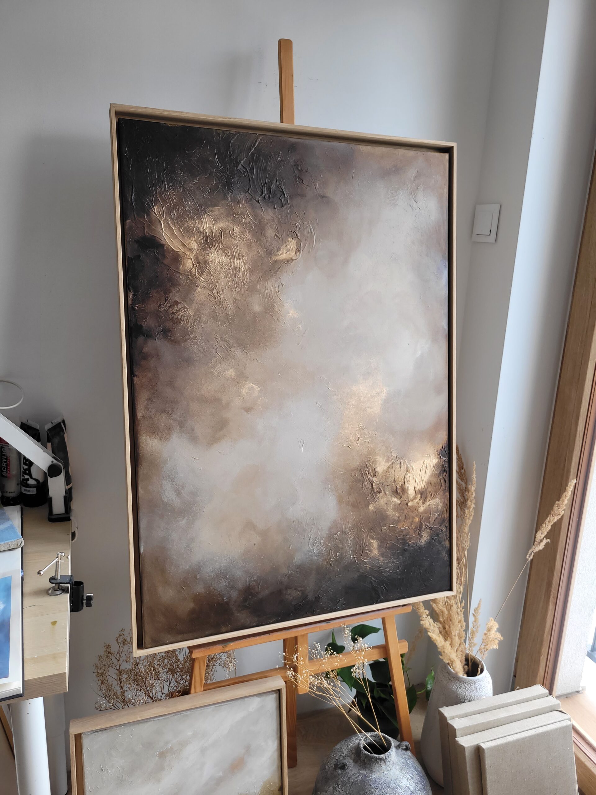 „Światło i mrok”, 100 x 70 cm, akryl i pasty strukturalne, 2025