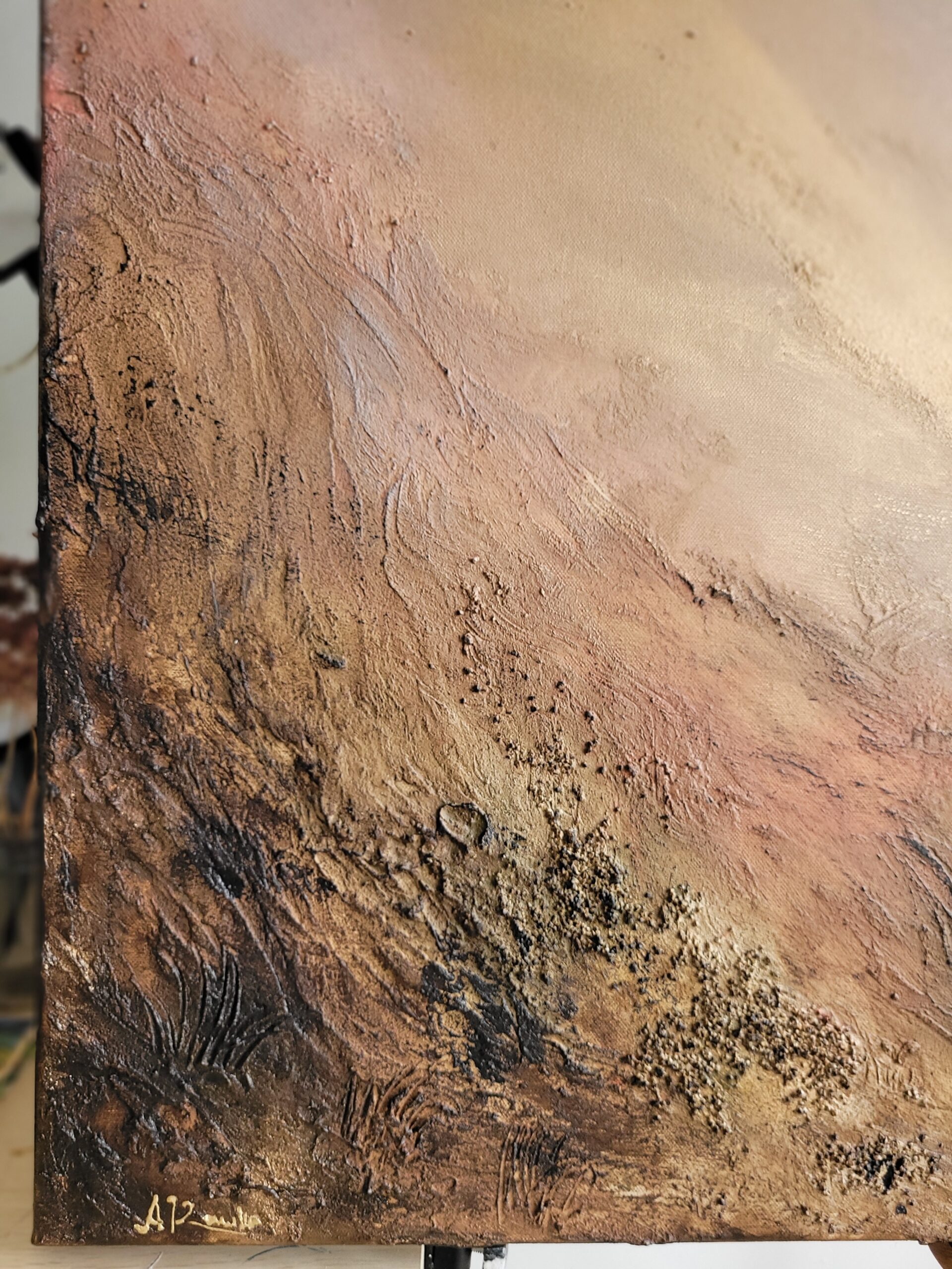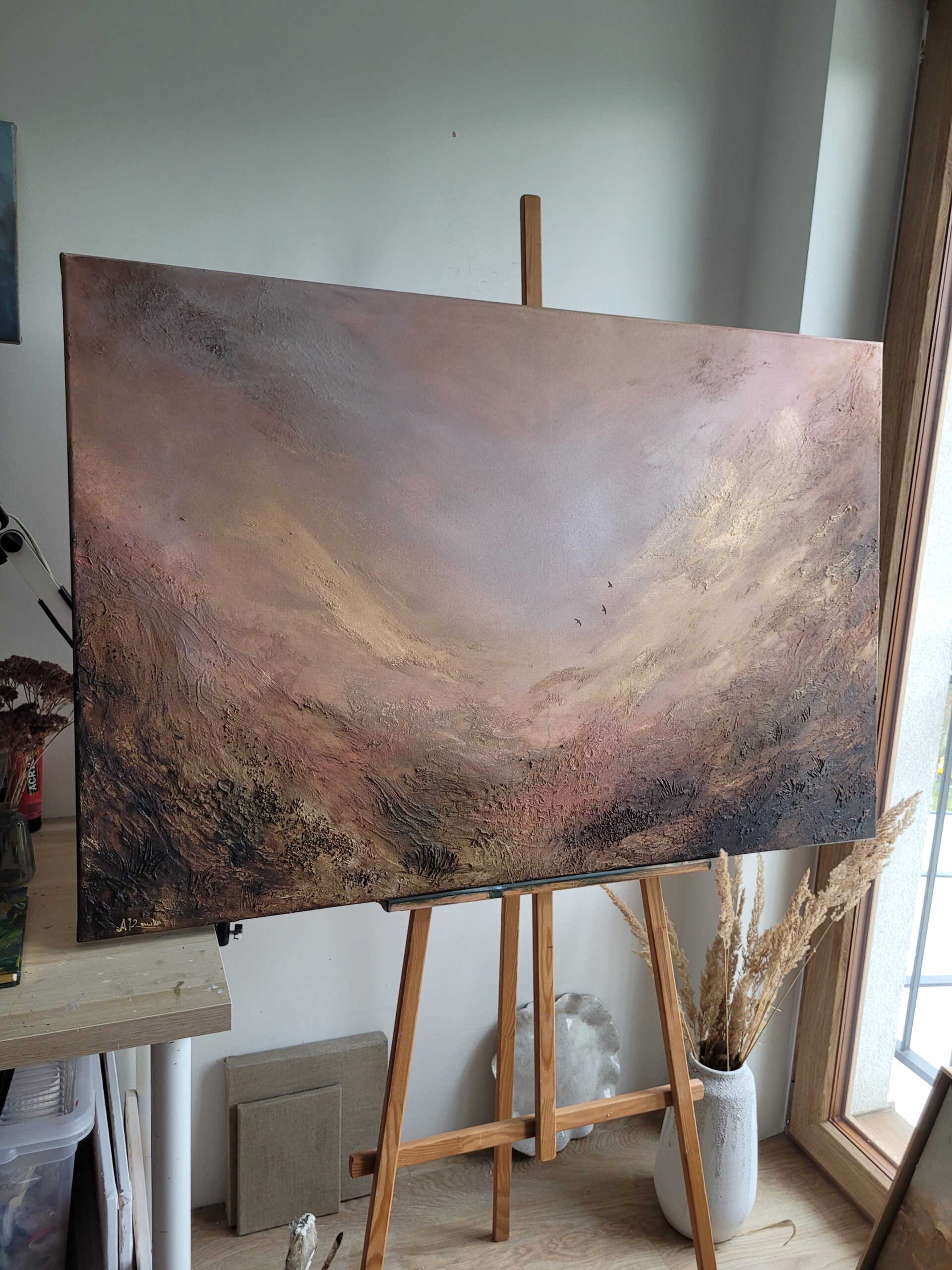 „Złota Dolina 9”, wym. 120 x 80 cm, akryl i pasty strukturalne na grubym, bawełnianym płótnie, 2026